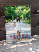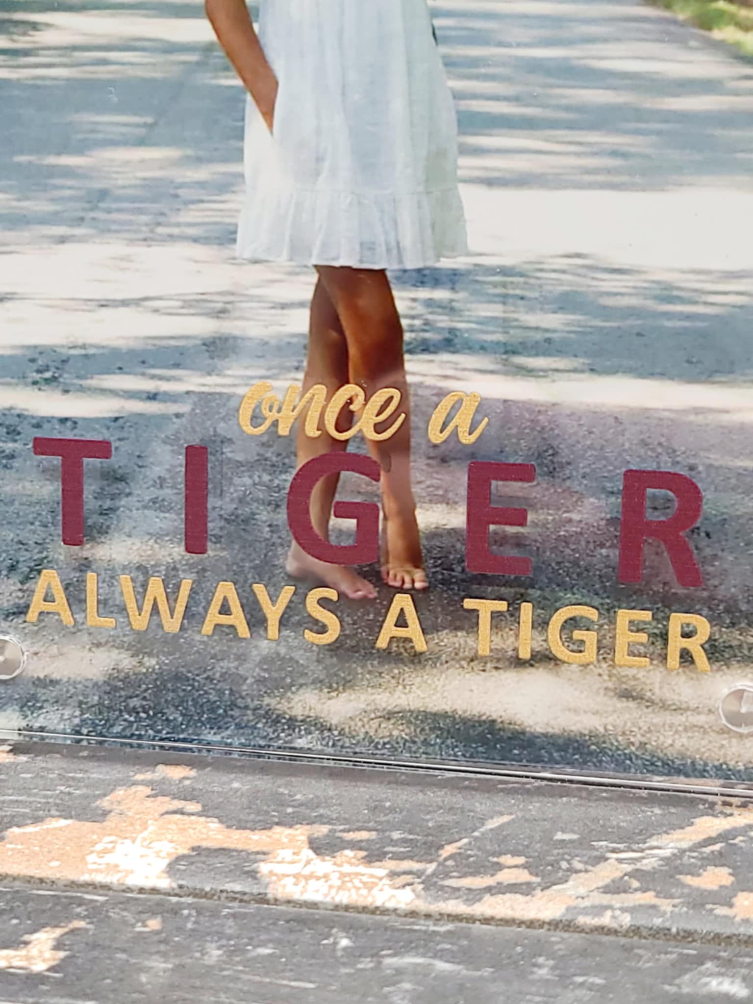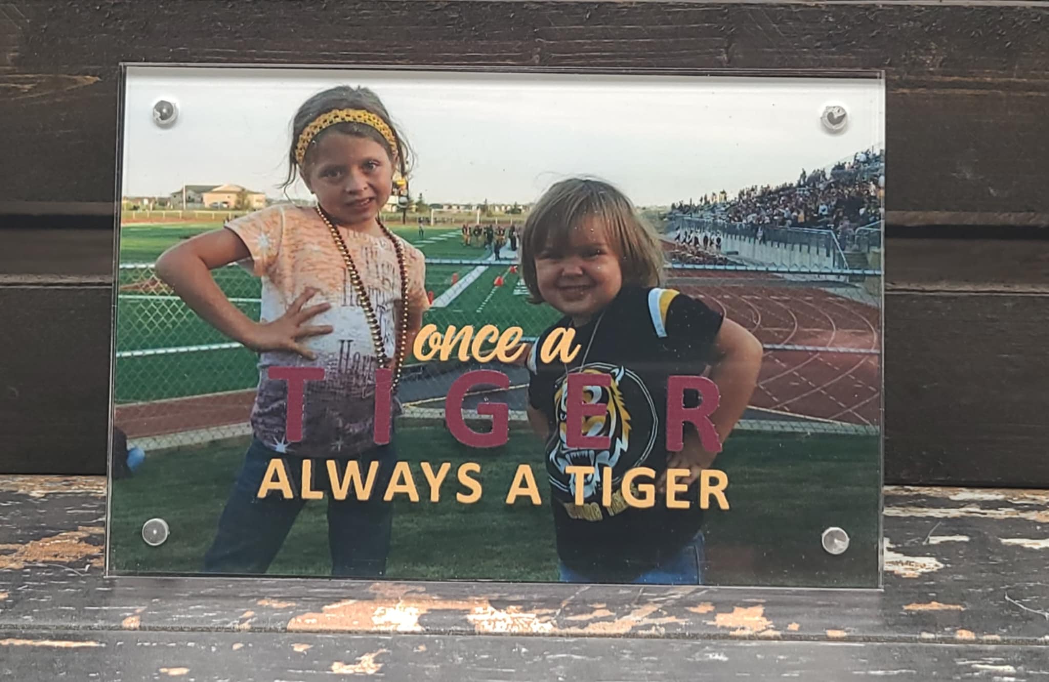 The text are printed directly onto the acrylic using a special printing process that results in a quality finish. The acrylics reflective properties enhances its visual impact and makes it stand out in any room! Acrylic photo plaques are also vey durable, they are shatter-resistant and have UV blocking properties that protect the photo from fading over time. Overall the sleek and frameless look make your photos and message appear to float! What a great way to showcase your favorite memories in a way that is both visually striking and long-lasting.