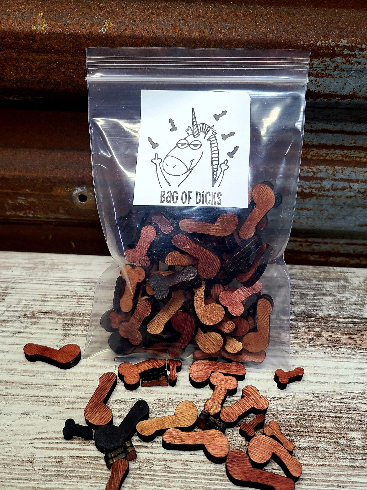 Wood Penis cutouts. Hand them out to your friends and family or someone who is…well just being a dick. Great for bachelor or bachelorette party’s, or any party for that matter! They come in a mixed variety or choose your own color! We wont judge.....