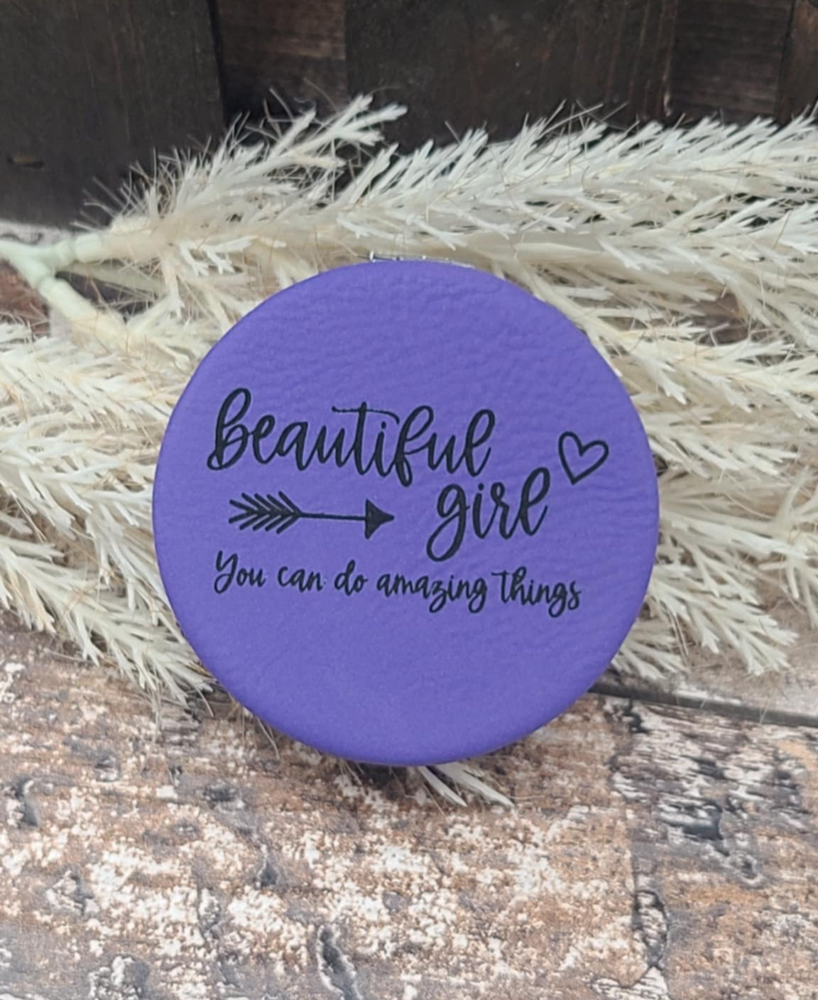 Elevate your everyday routine with our customizable leather compact mirror, a refined accessory that marries functionality with personalization. Adorned with intricately engraved a name of your choice, this mirror is a statement of individual style. Its compact size makes it an ideal companion for on-the-go touch-ups, while the premium leather exterior exudes sophistication. A thoughtful gift or a chic addition to your collection, this mirror blends practicality with personalized elegance, embodying a unique touch that speaks volumes about your distinct taste and attention to detail. Perfect gift for girlfriend, besties, mom and daughter.