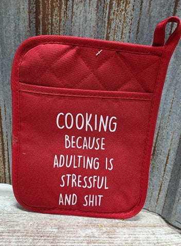 Fun Potholders, Funny Saying, Fun & Sassy Pot Holders, Kitchen Access, Gifts for Mom, Housewarming Hostess Gift, When In Doubt, Pull it out.