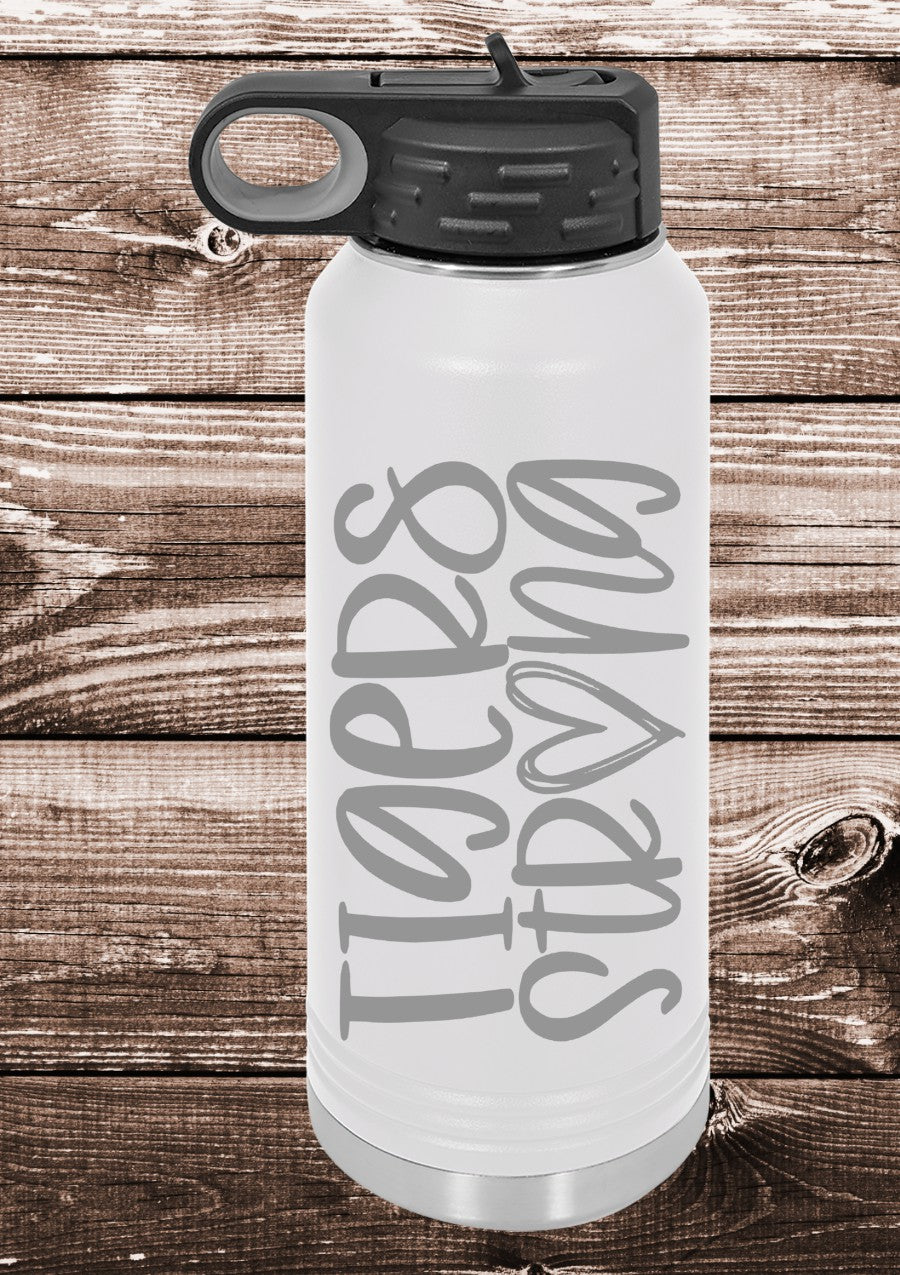The 20 ounce and 30 ounce water bottles have a flip lid with a straw.