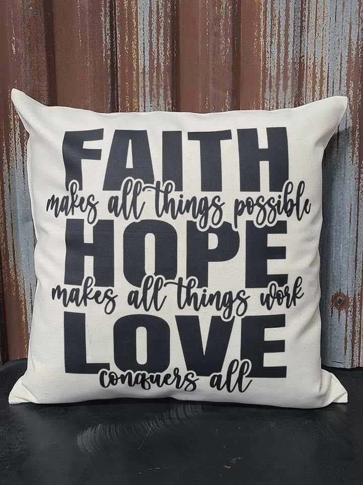 This 16"x16" sturdy natural canvas pillow cover features an easy to open zipper.