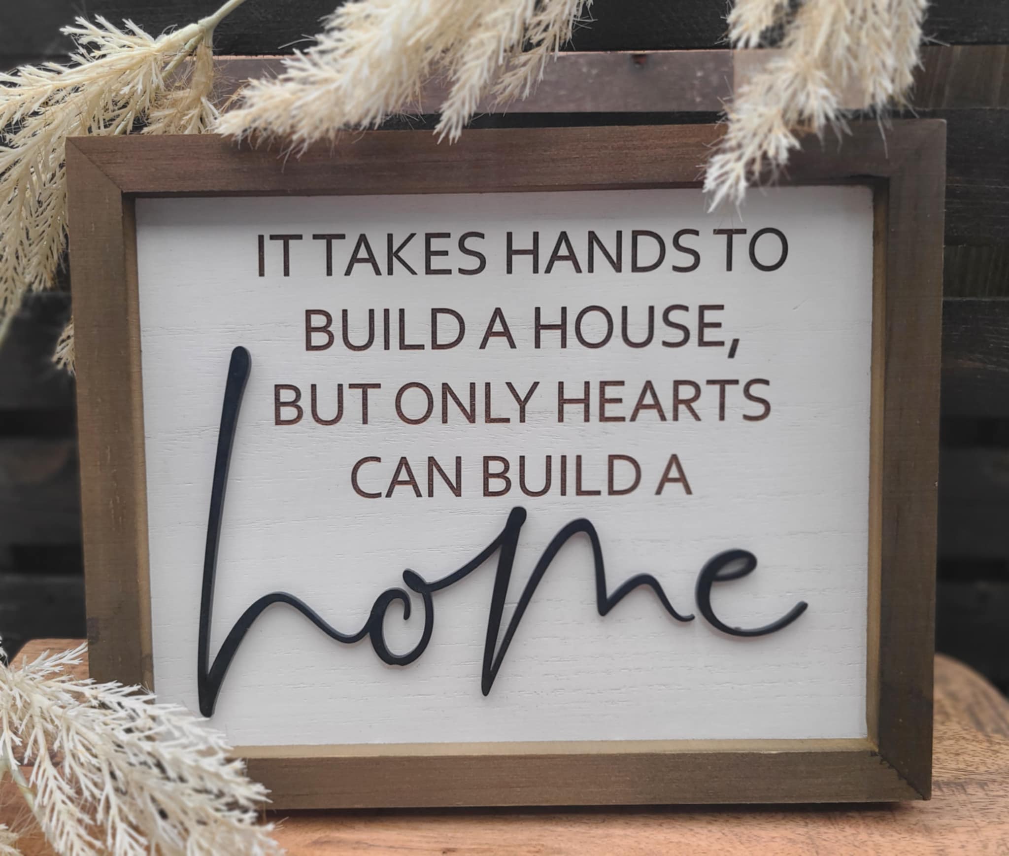 This measures 10 inches by 8 inches and are both laser engraved and have 3D acrylic. words are cut out of black acrylic and adheres to the wood giving it a beautiful 3D effect.