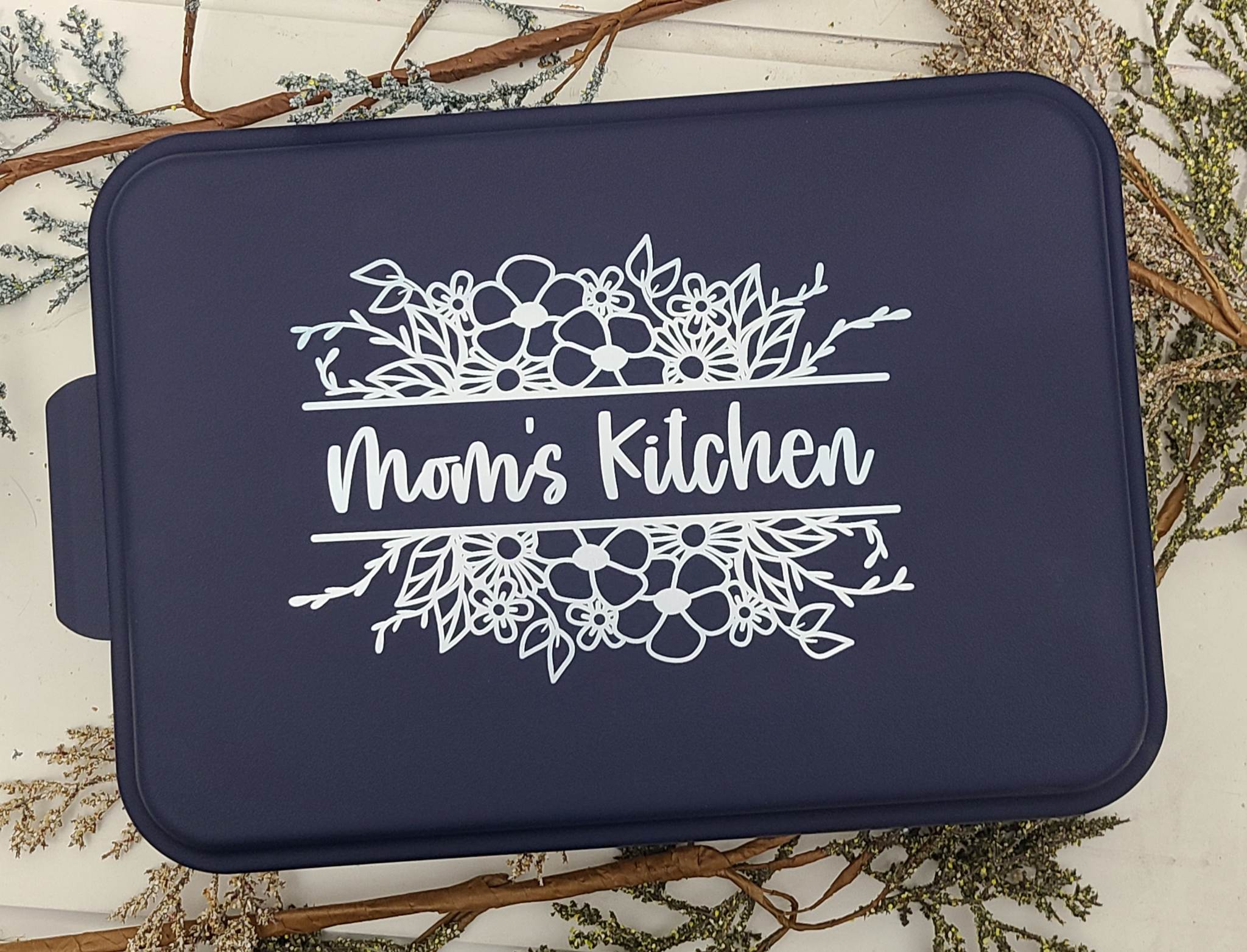 This is a personalized 13' x 9' aluminum cake pan. It will make the perfect gift for yourself, a housewarming, shower, Christmas gift, birthday gift, Mother's Day gift for Mom or Grandma and the list could go on and on. They can be personalized with your name and established date, your business logo or your own design.