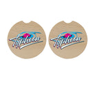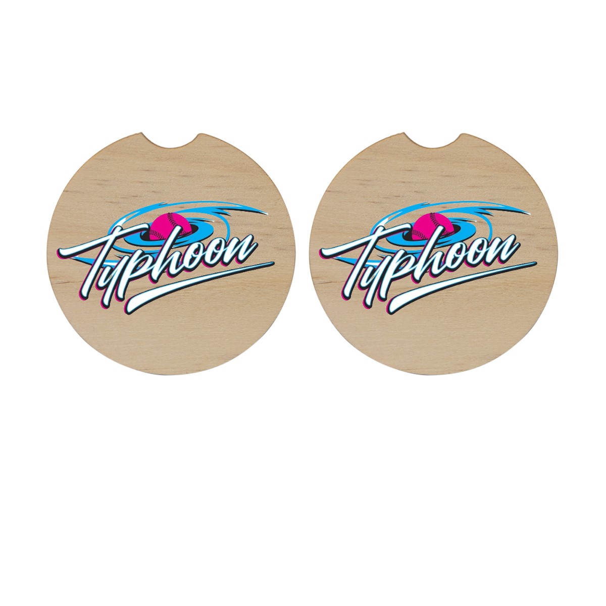 Set of 2 round wood car coaster. Has a finger notch for easy removal from cup holder.