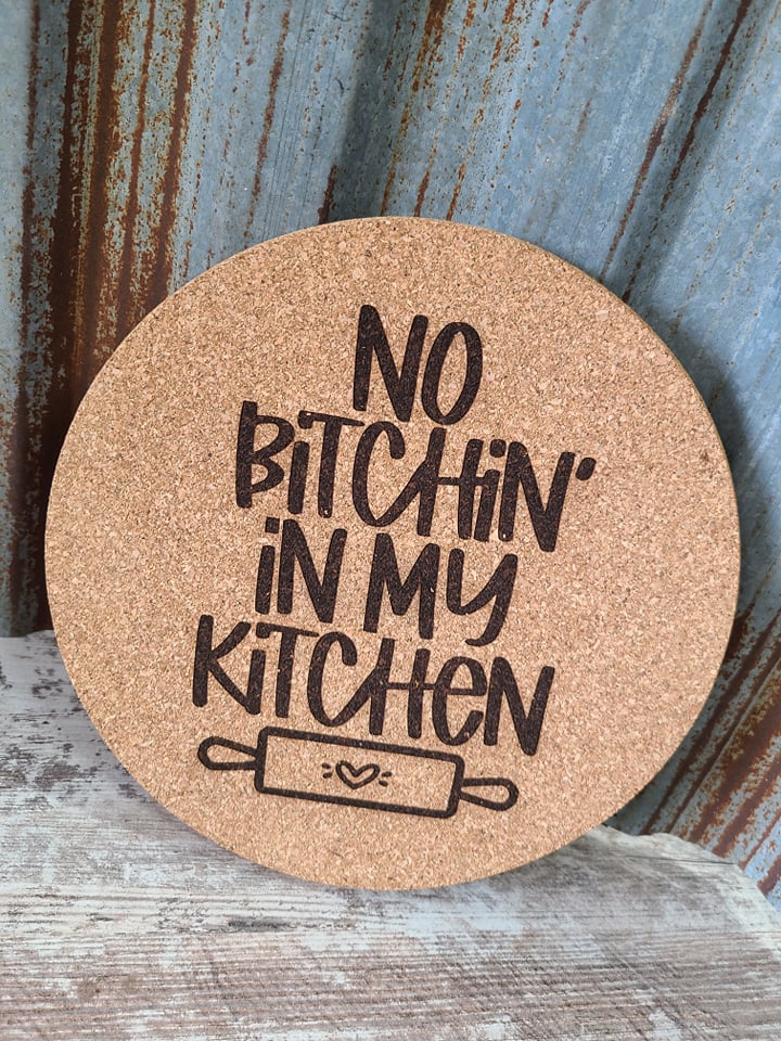 Spice up your kitchen with a 7.5 inch cork trivet. These mats make a fun gift for any occasion.