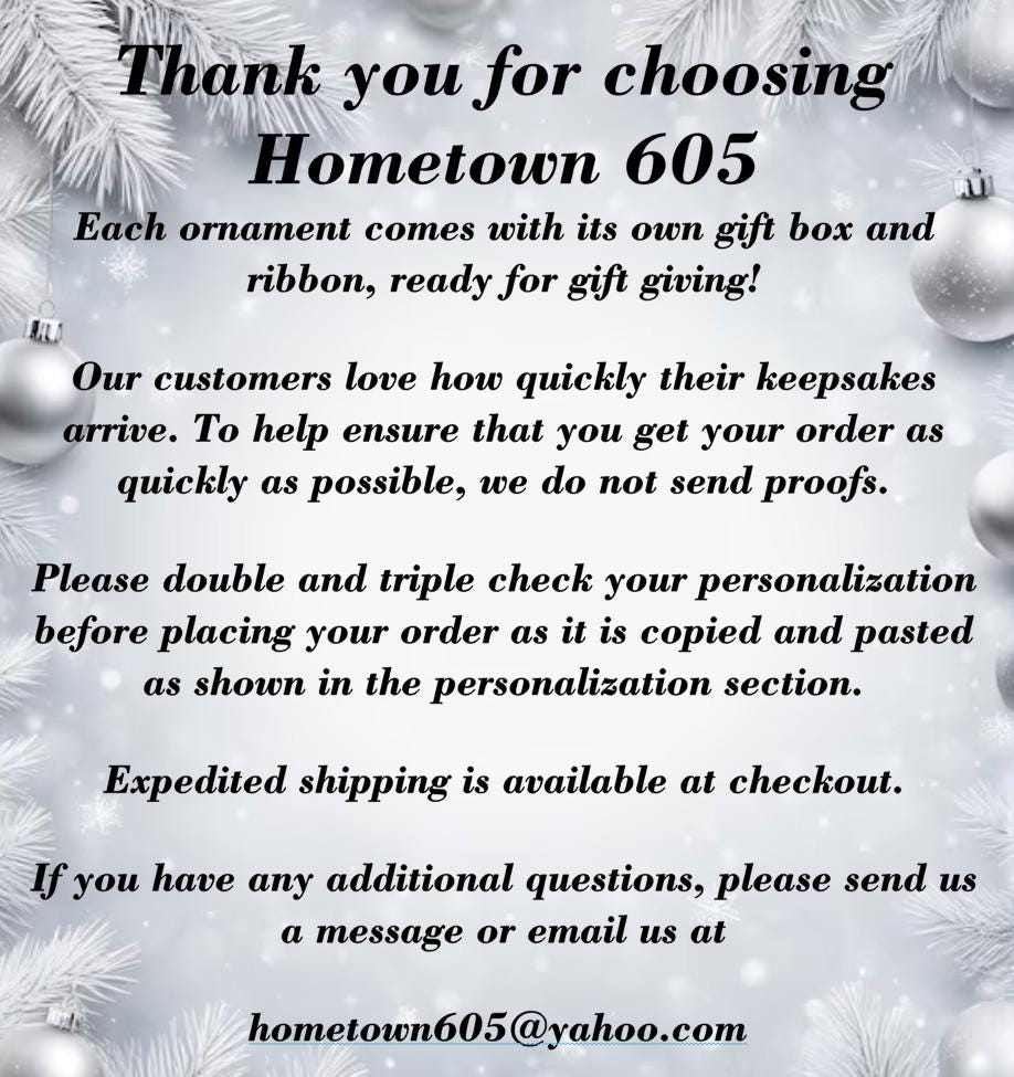 ✧ If you are purchasing more than one ornament add them to cart one at a time with personalization
